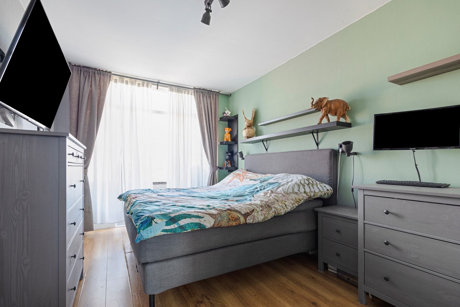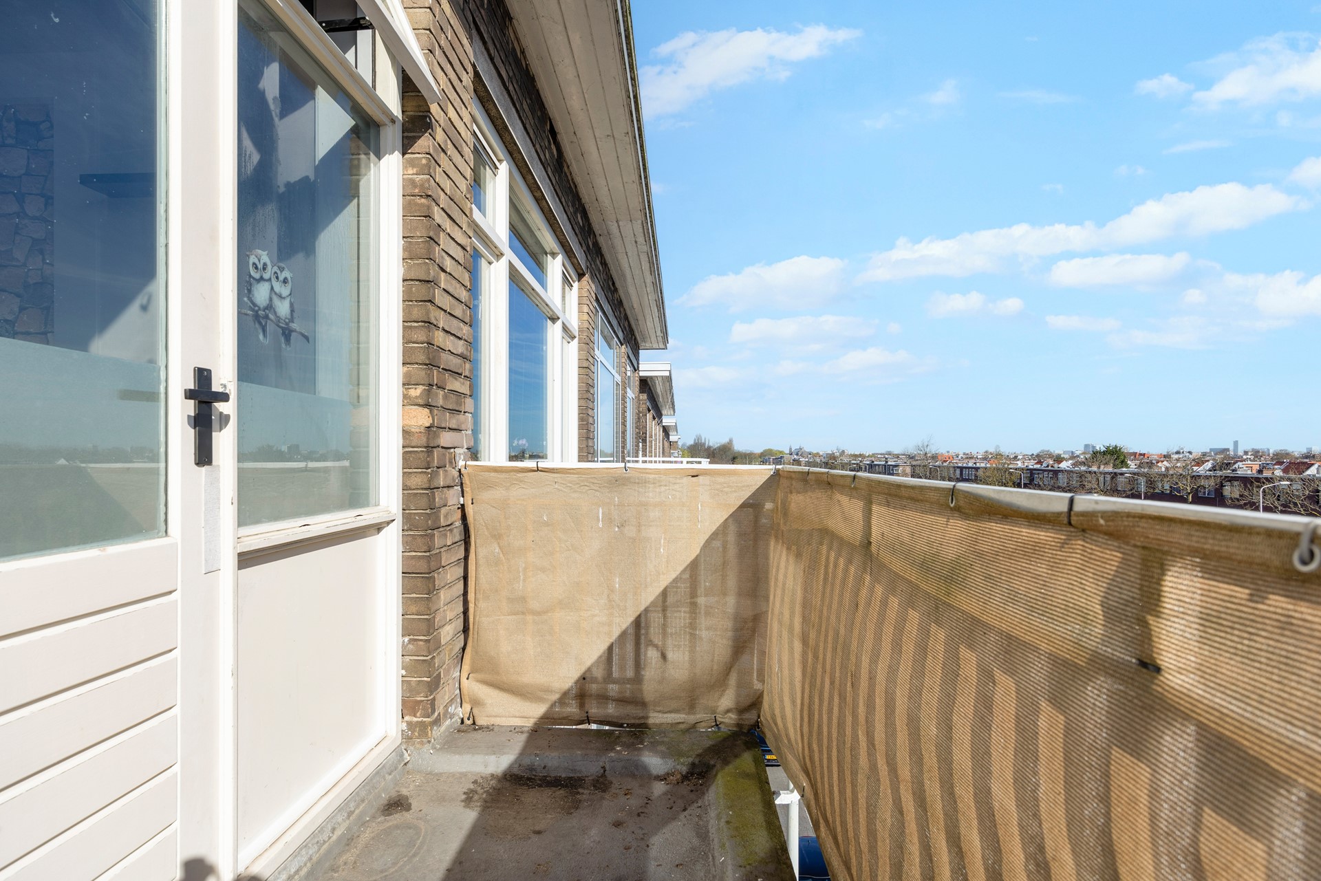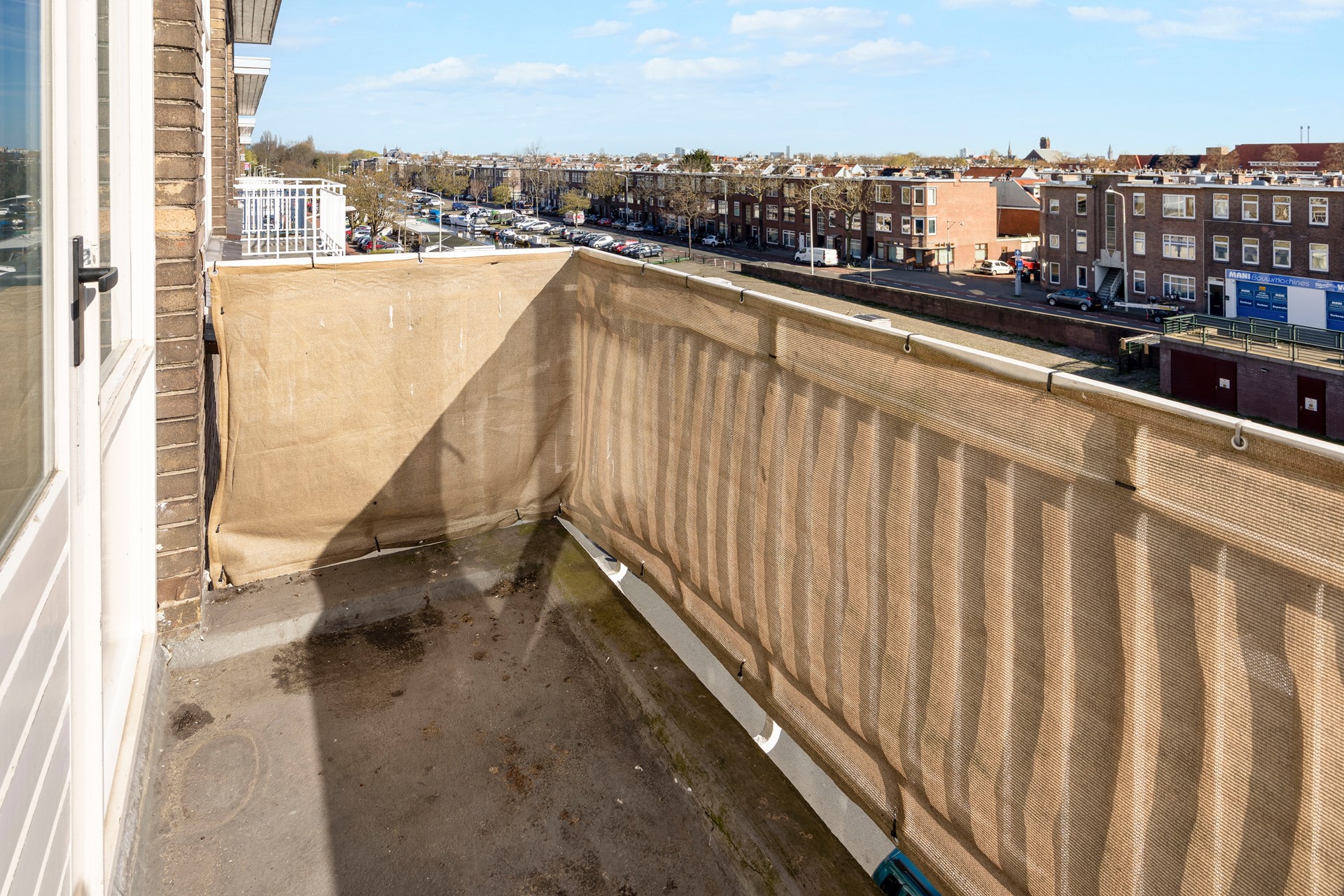 De slaapkamer aan de voorzijde biedt toegang tot het balkon. Het balkon is circa 3,5m2 groot en biedt een fraai uitzicht over een groot gedeelte van Den Haag.