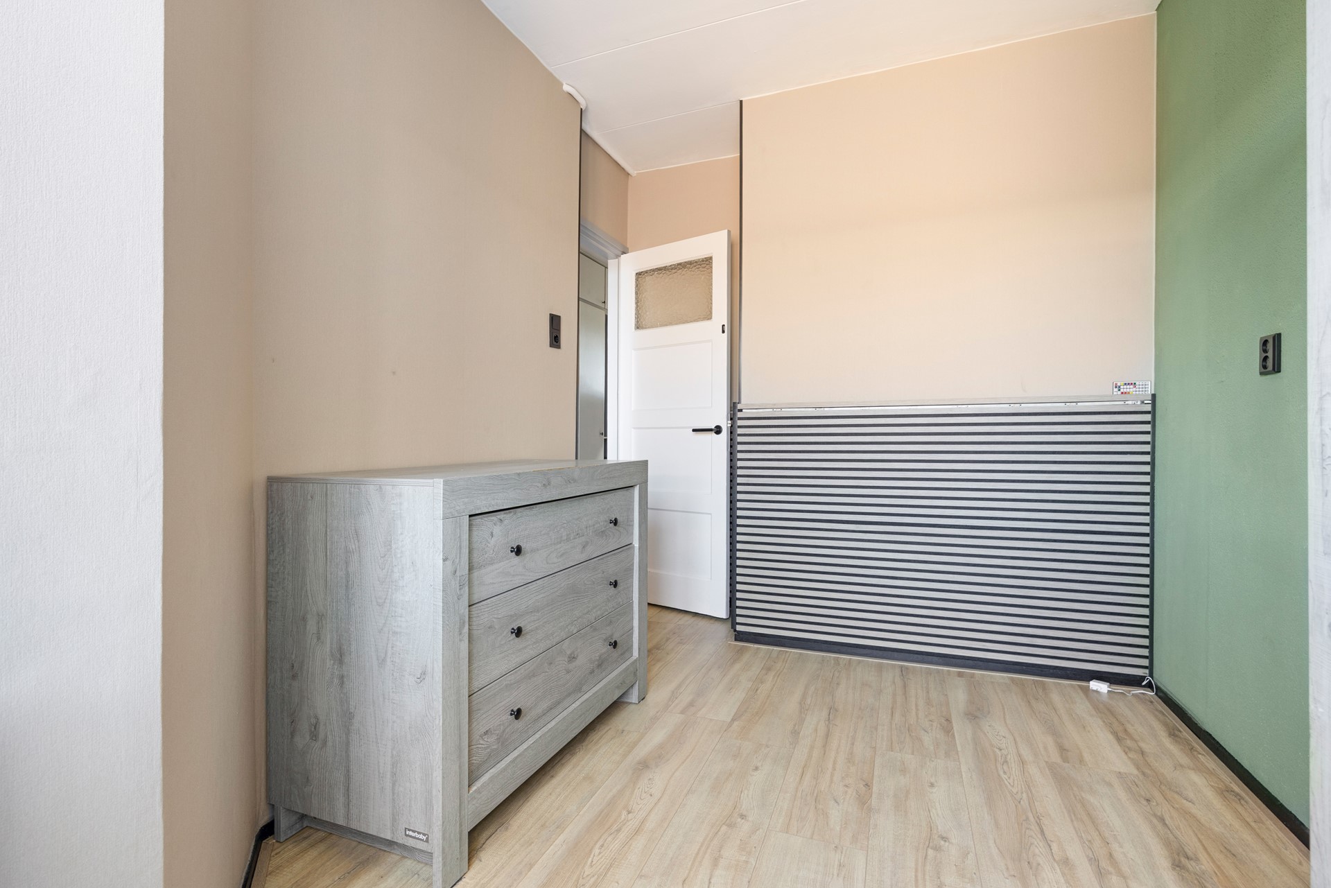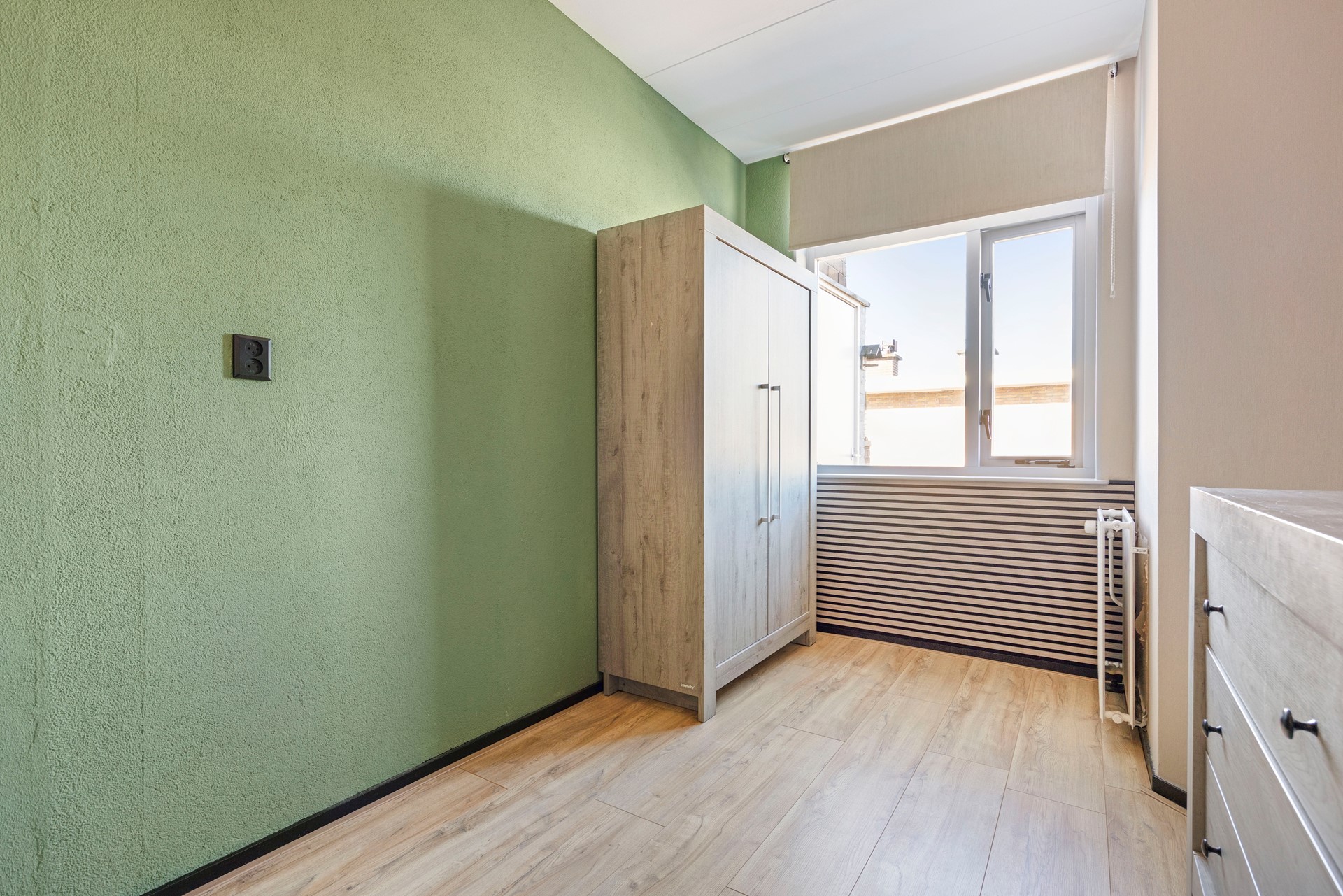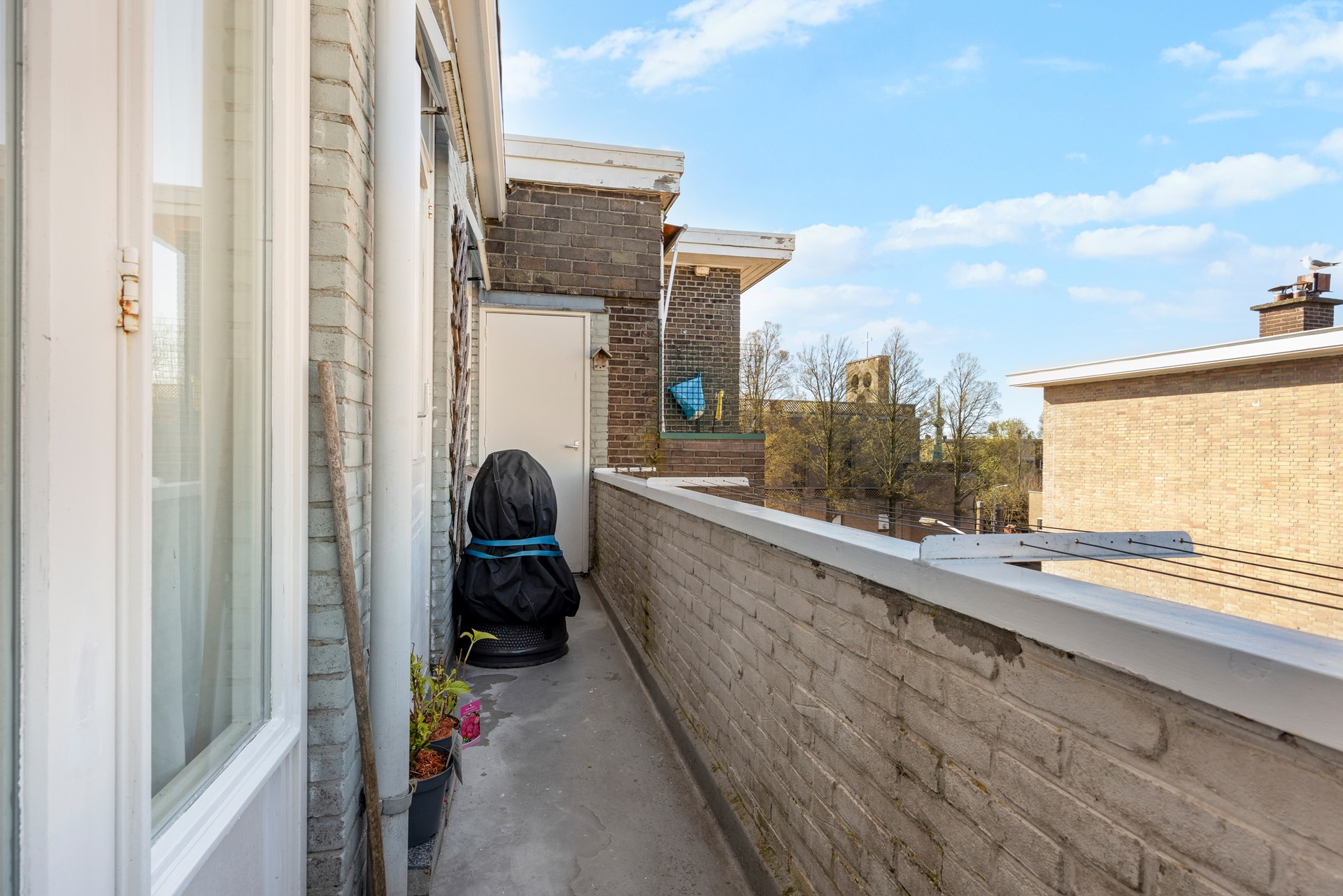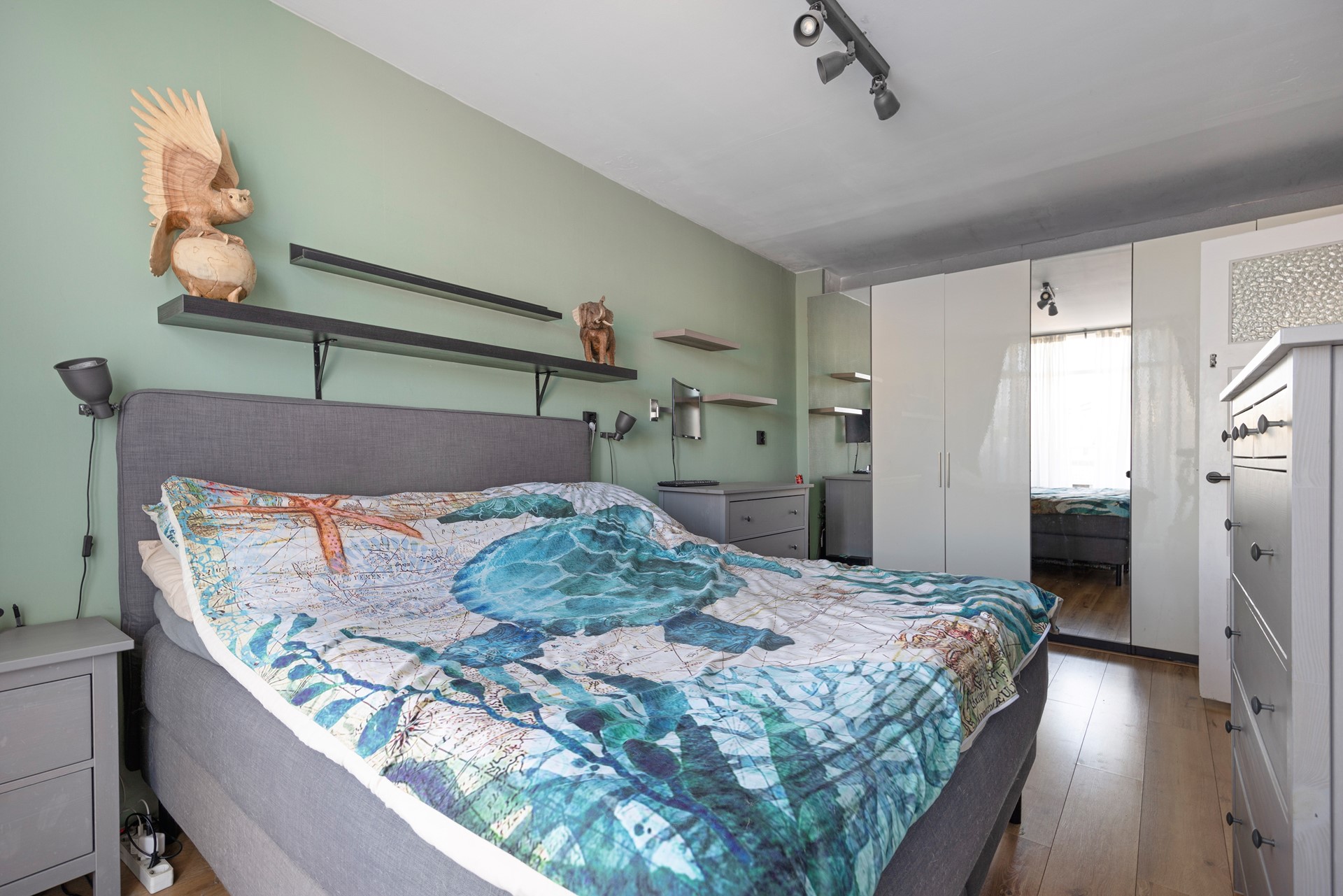 De slaapkamer aan de voorzijde biedt toegang tot het balkon. Het balkon is circa 3,5m2 groot en biedt een fraai uitzicht over een groot gedeelte van Den Haag.