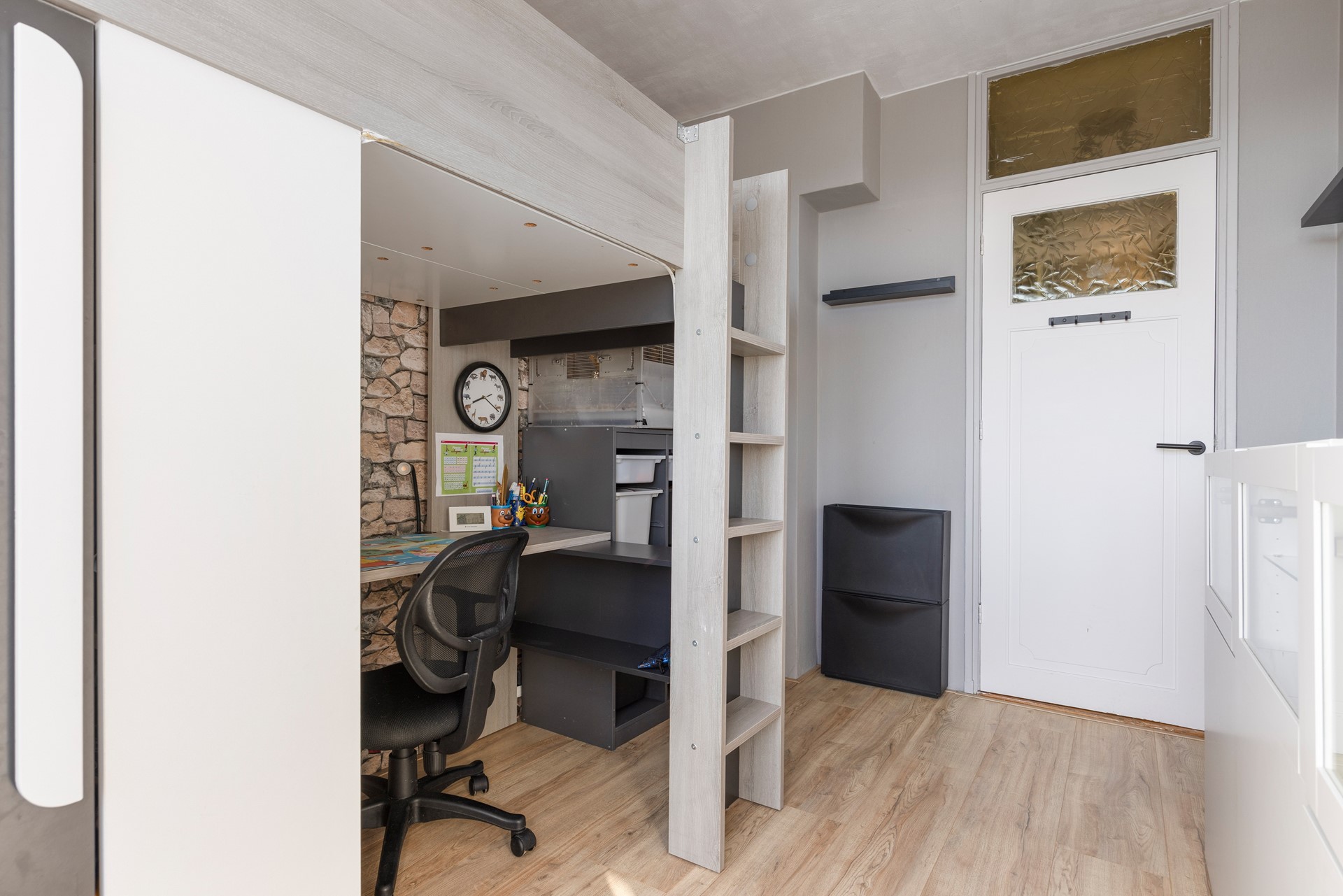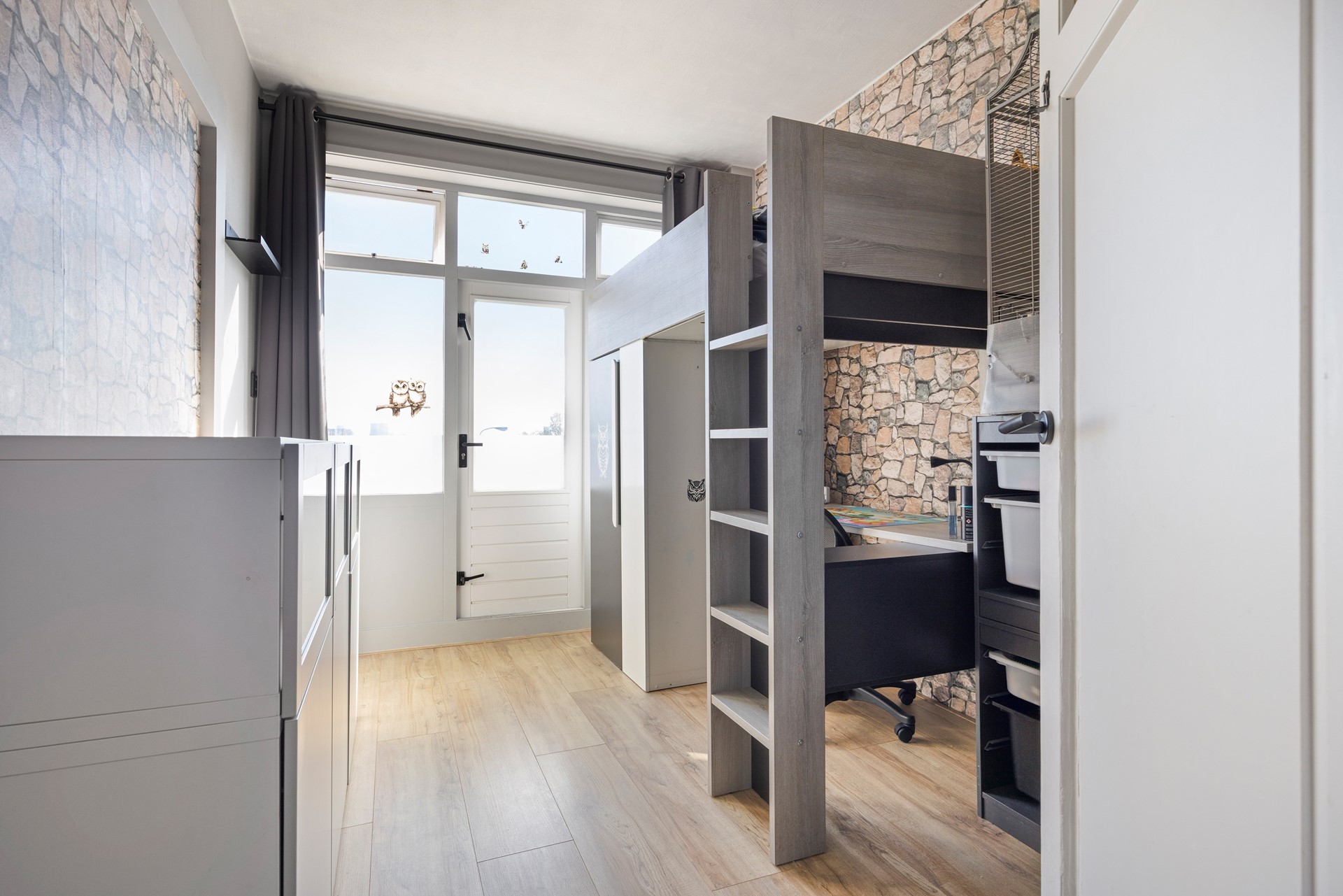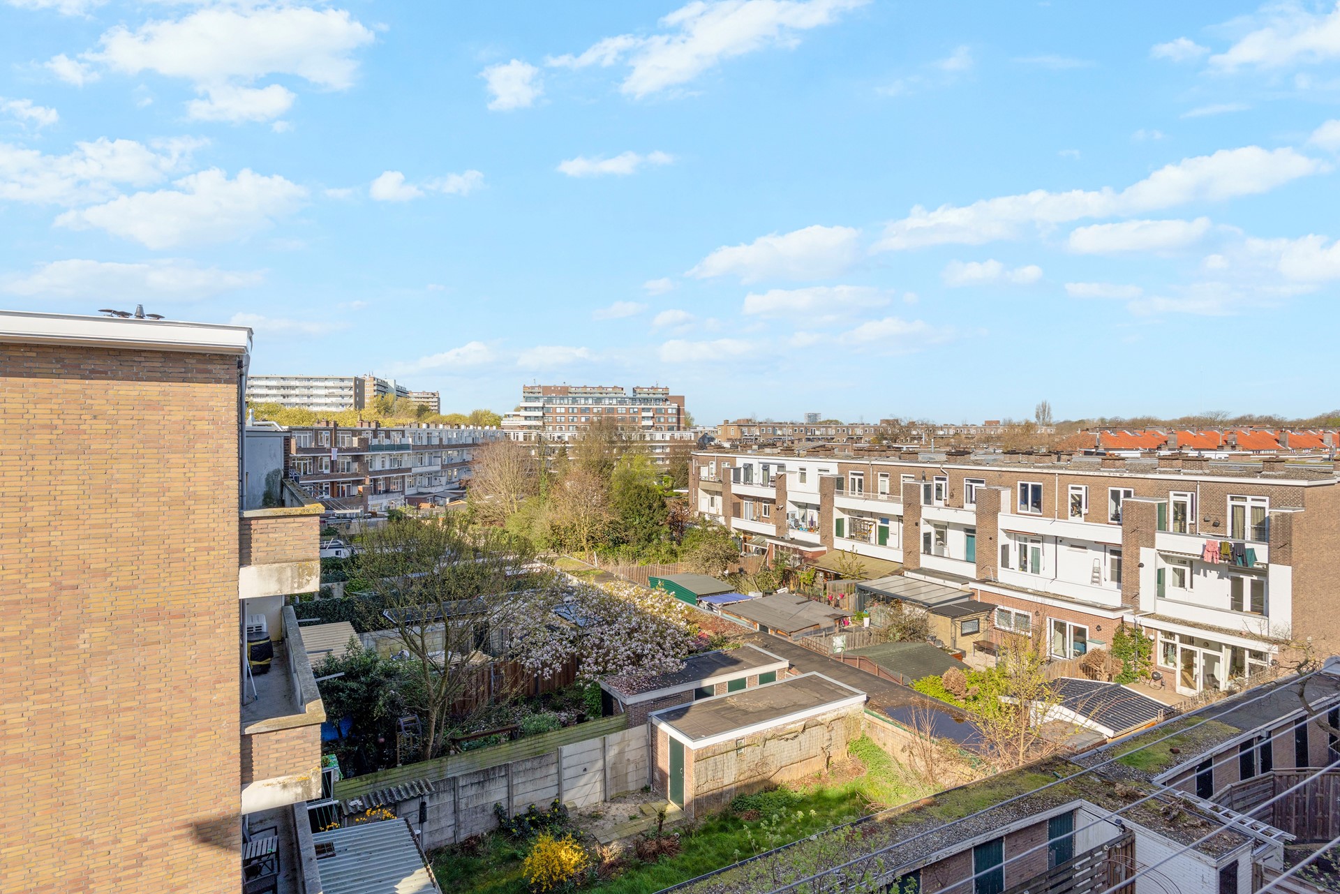 De slaapkamers en de keuken aan de achterzijde bieden toegang tot het ruimere balkon (circa 6,5m2) gesitueerd op het zuidwesten en biedt ook vrij uitzicht over een gedeelte van de wijk 'Leyenburg'.